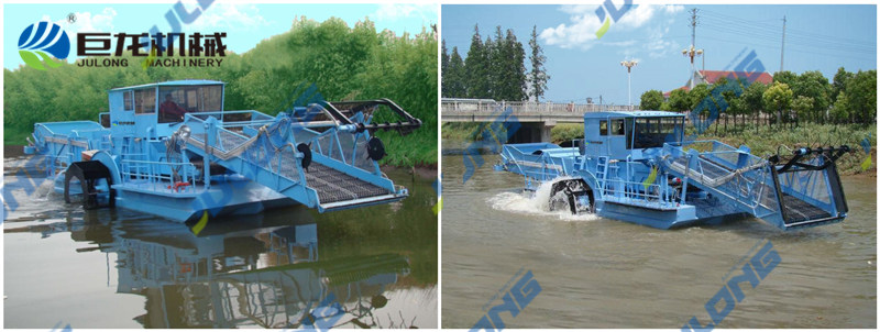 3、該船安裝了3套切割工具和一套機(jī)械化收集輪,可以更好地收割水草,清理漂浮垃圾。自動(dòng)收割清理船的切割深度可以很容易的調(diào)整為0-1.5米,實(shí)現(xiàn)收集漂浮雜草,垃圾和清理水面的雙重目的。